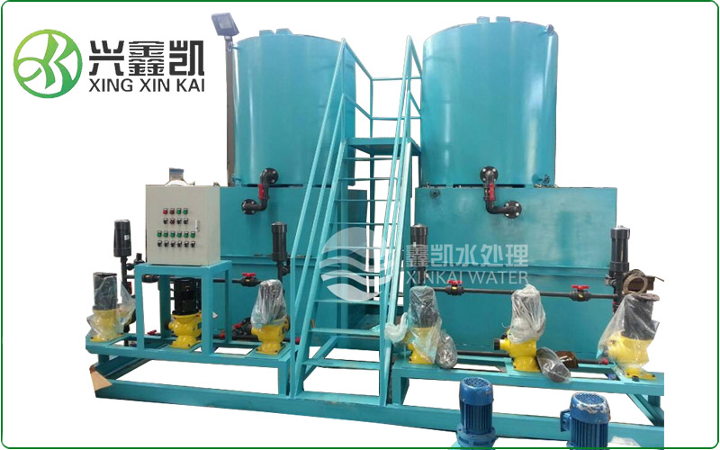 全自動加藥裝置又稱為全自動加藥設(shè)備,他有加絮凝劑如PAM、PAC以及冷卻循環(huán)水投加緩釋阻垢劑。2種系統(tǒng)控制方式不一樣,加絮凝劑主要是定量投加,根據(jù)投加后出水礬花來定量投加,加緩釋阻垢劑主要是通過管道系統(tǒng)電導(dǎo)率來控制管道排污,當(dāng)管道電導(dǎo)率達(dá)到設(shè)定參數(shù),自動排污。